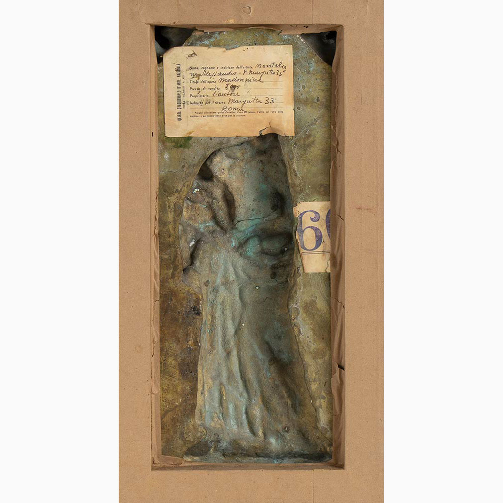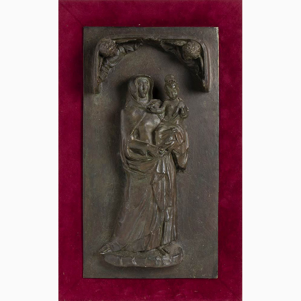 Scultura in bronzo su tavola di legno foderata di velluto, 52 x 27,5 x 7 cm