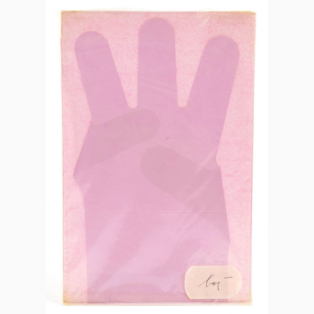 Multiplo (guanto di plastica nella custodia in mylar), 22 x 10 cm