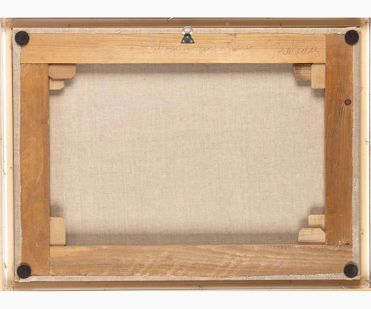 Firma e data in basso a destra: Bonalumi 05 Dedica al retro: “A Silvano, con stima Bonalumi”