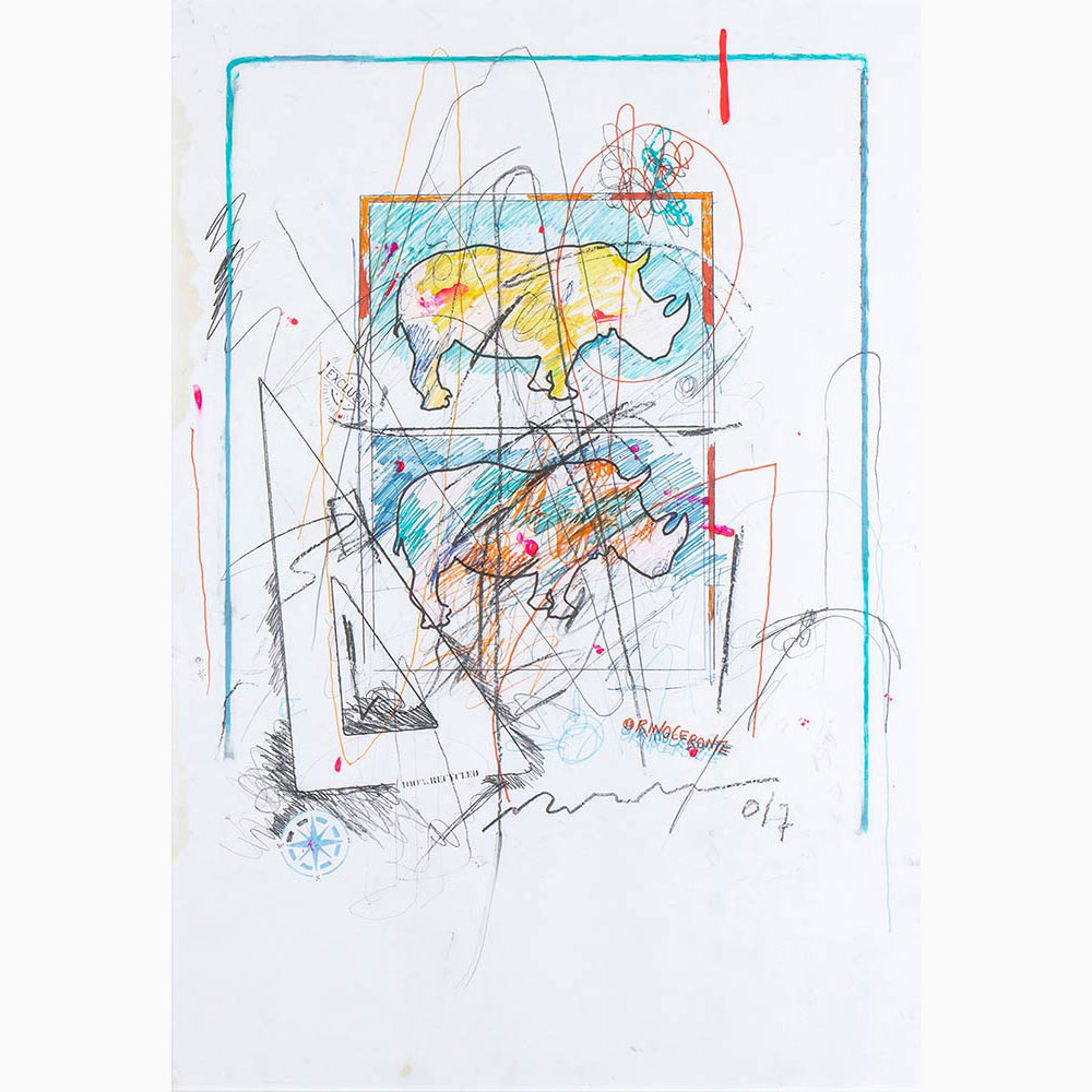 Firma, titolo e data al retro: Manera, Orinoceronte, 2017