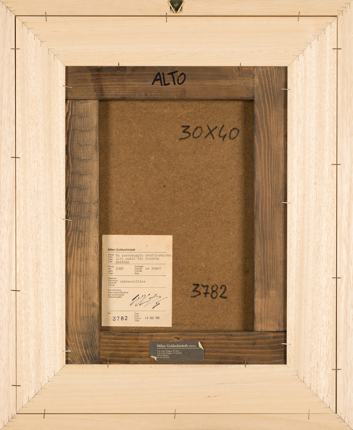 Etichetta dell'Artista con firma, titolo, tecnica, misure e datazione al retro