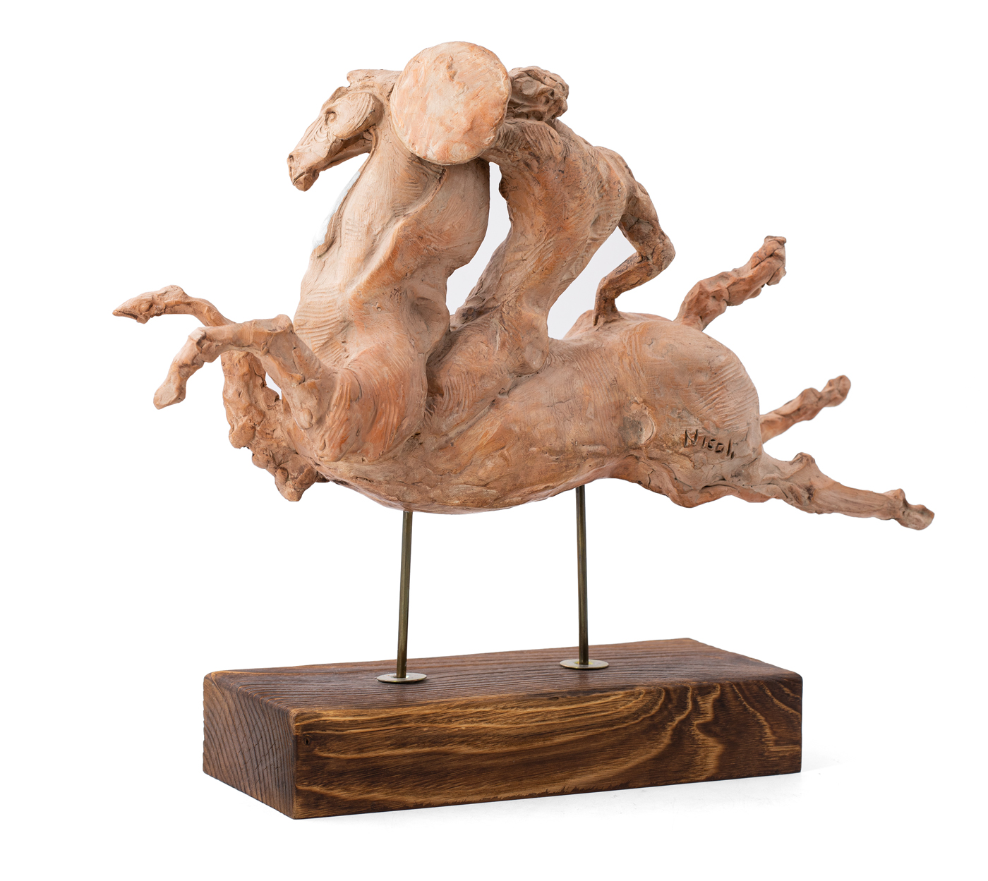 Scultura in terracotta poggiante su base in legno - Unico esemplare