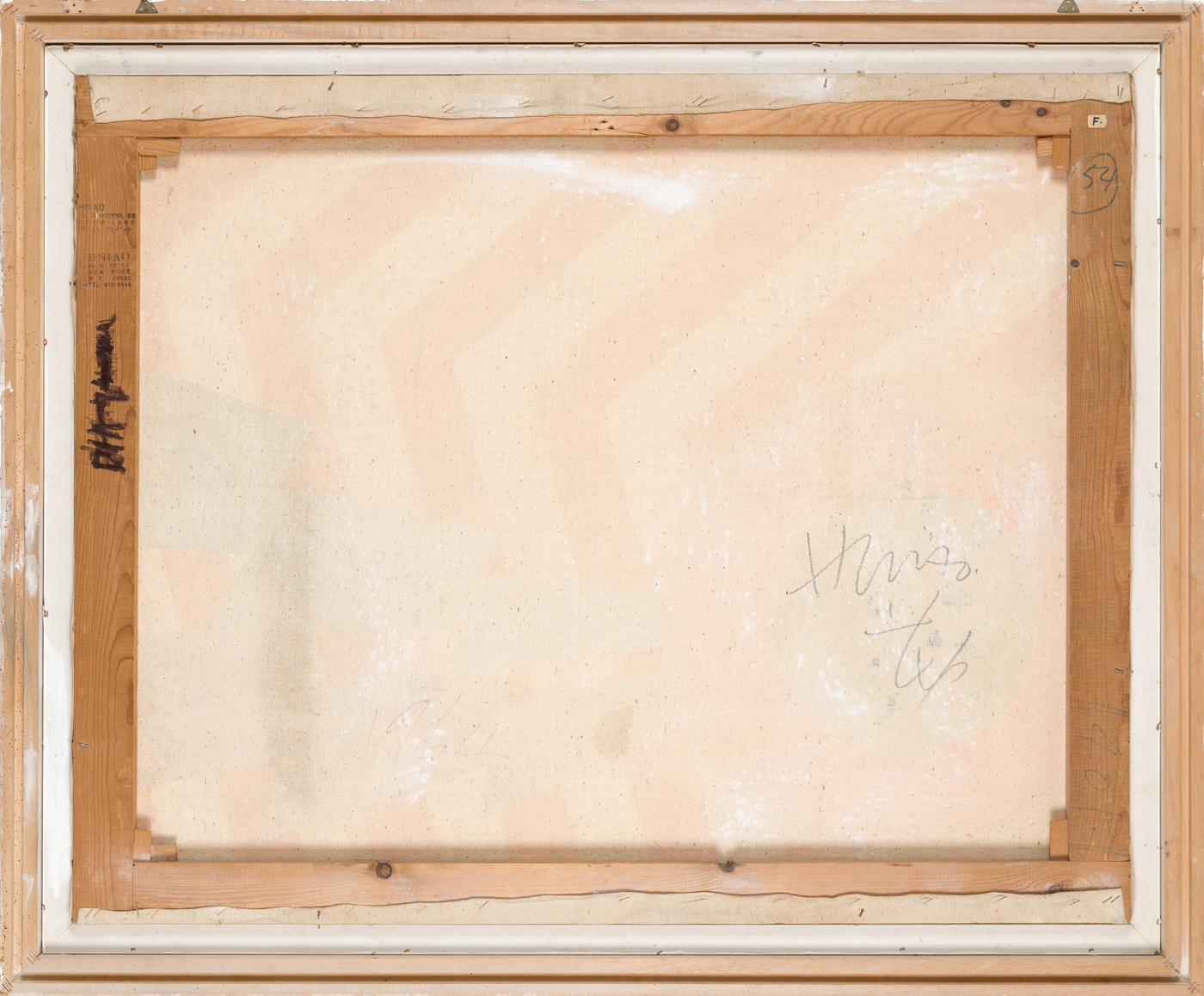 Timbro dello studio dell'Artista (New York) e timbro dello studio dell'Artista (Milano) al retro