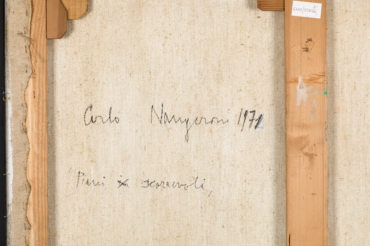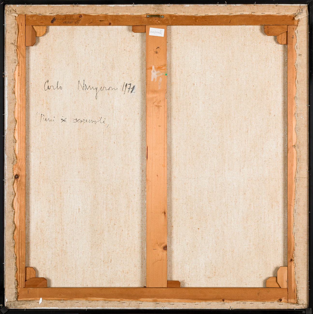 Timbro della Galleria Gissi (TO) con numero di inventario al retro sul telaio