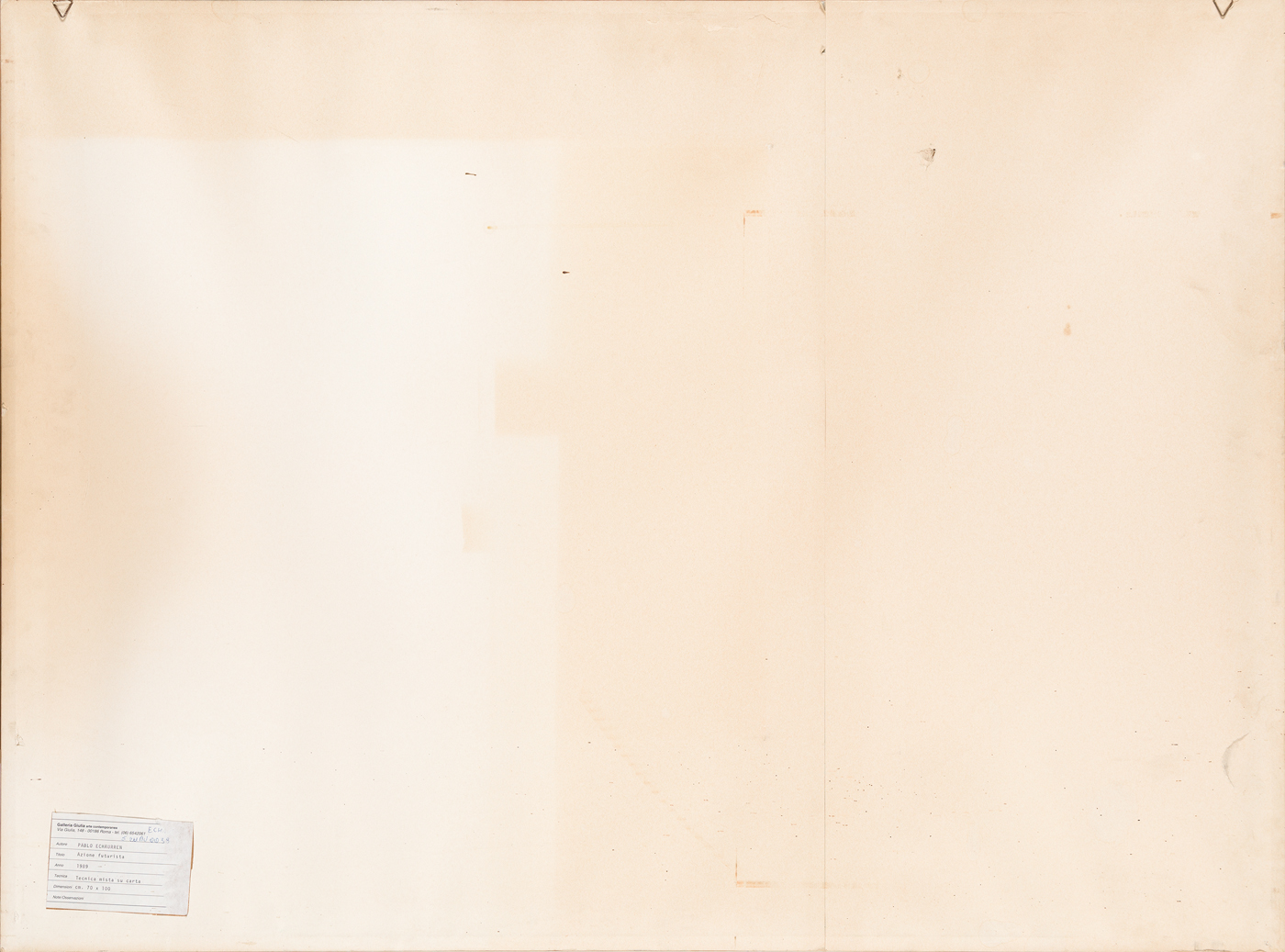Etichetta della Galleria Giulia Arte Contemporanea (RM) con caratteristiche tecniche dell'opera al retro del cartone protettivo