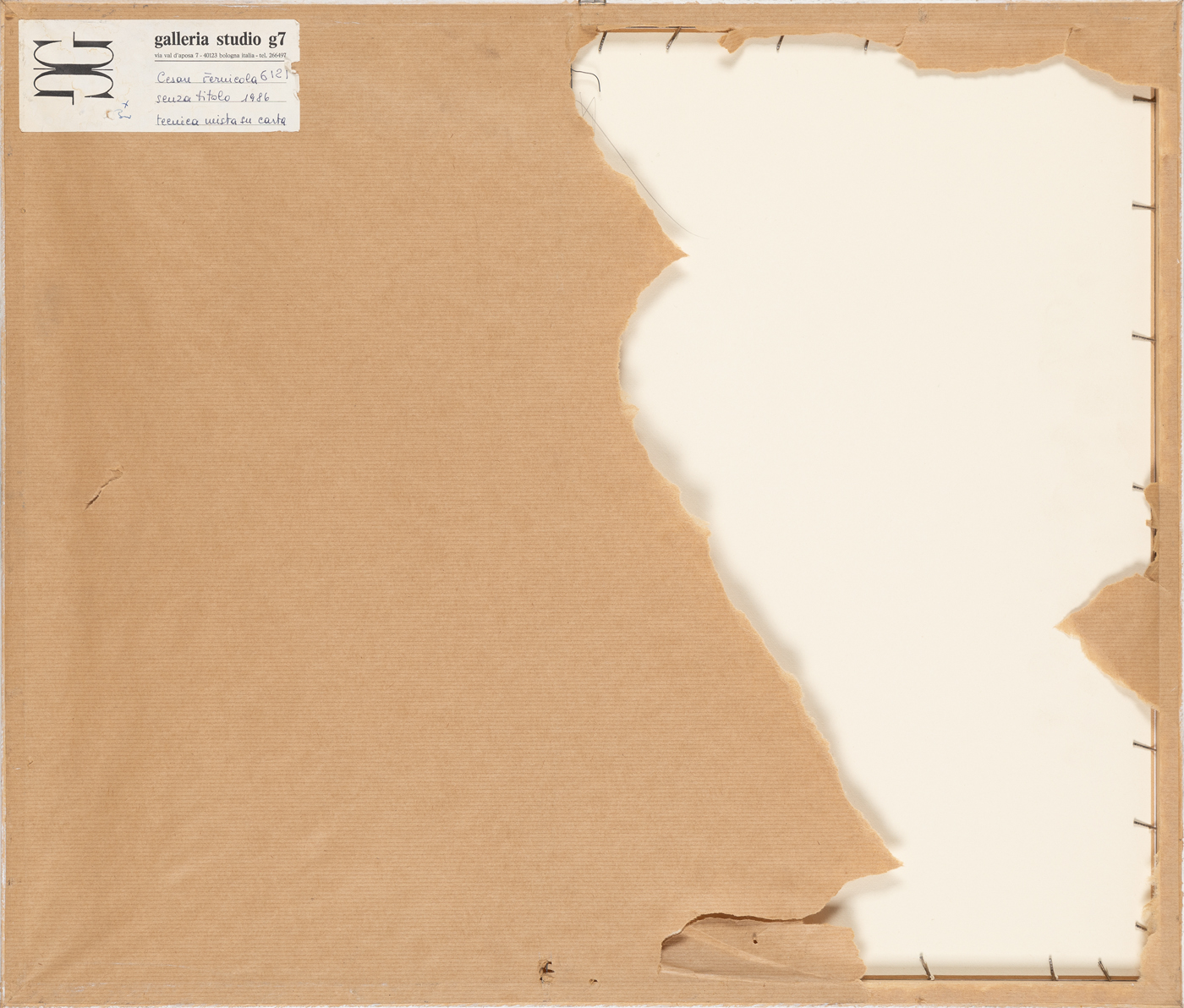 Etichetta della Galleria Studio g7 (BO) al retro del cartone protettivo