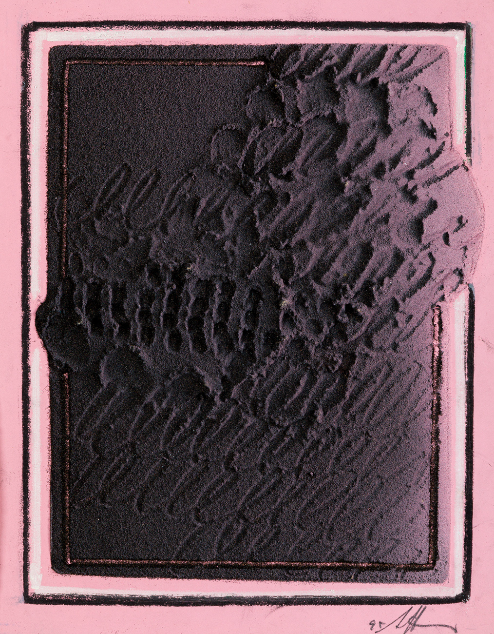 Tecnica mista e sabbia su cartoncino applicato su tavola