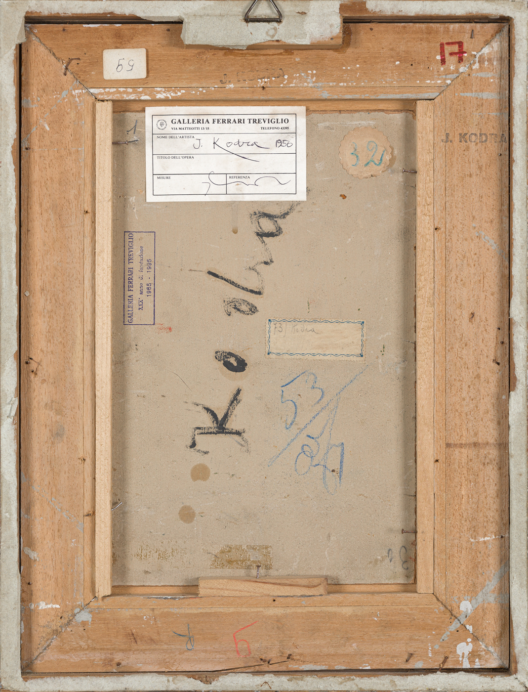 Etichetta e timbro della Galleria d'Arte Ferrari (BG) al retro