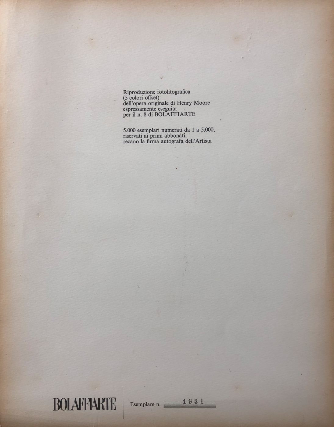Opera espressamente eseguita per il N.8 di Bolaffiarte (Esemplare 1931 di una tiratura di 5000 esemplari), come da indicazioni al retro
