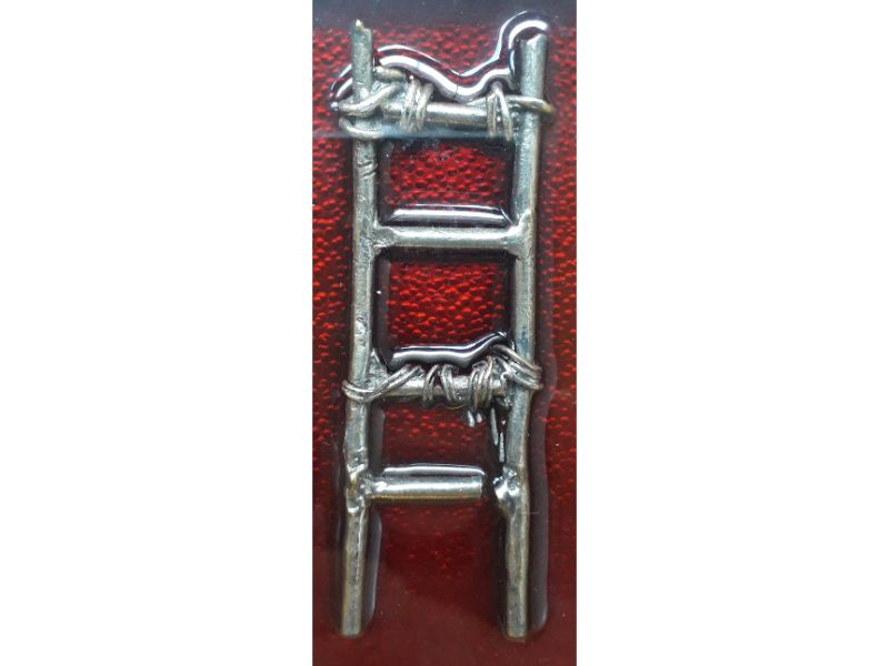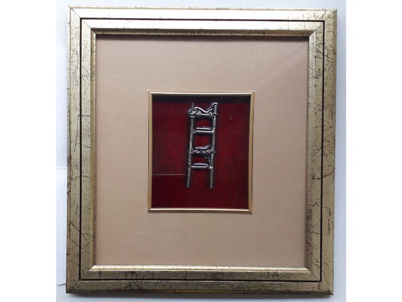Fusione in metallo argentato su sfondo smaltato es. 900