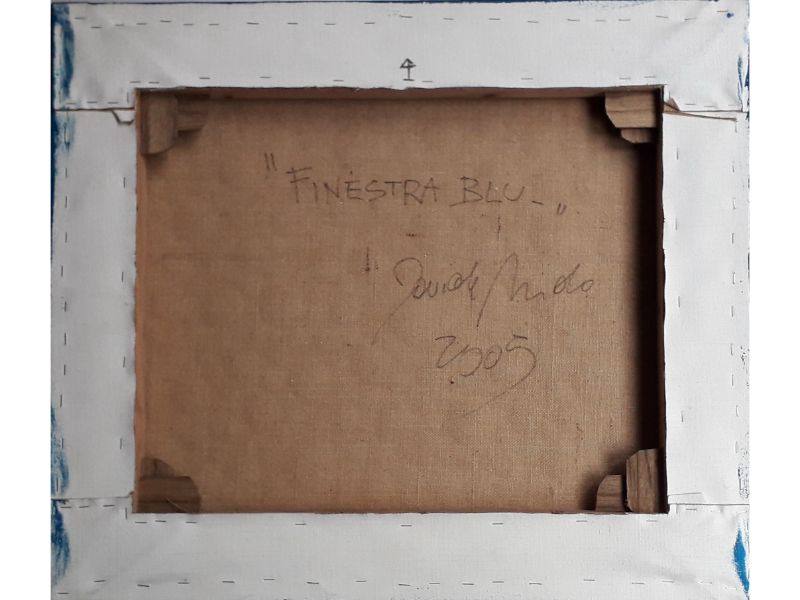 Lotto 109 | NIDO DAVIDE Senago (Mi) 1966 Finestra blu 2005 Mista su tela 60,00x70,00x5,00