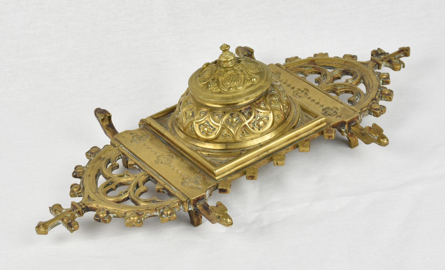 CALAMAIO IN BRONZO finemente cesellato in stile neogotico con una ampolla...