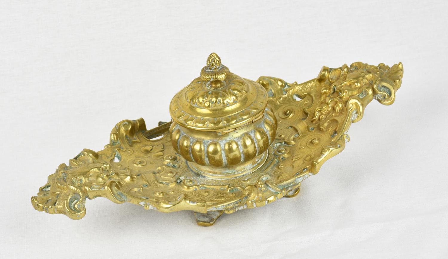 Lotto 4 | CALAMAIO IN BRONZO DORATO a forma di navicella finemente cesellato con ai...