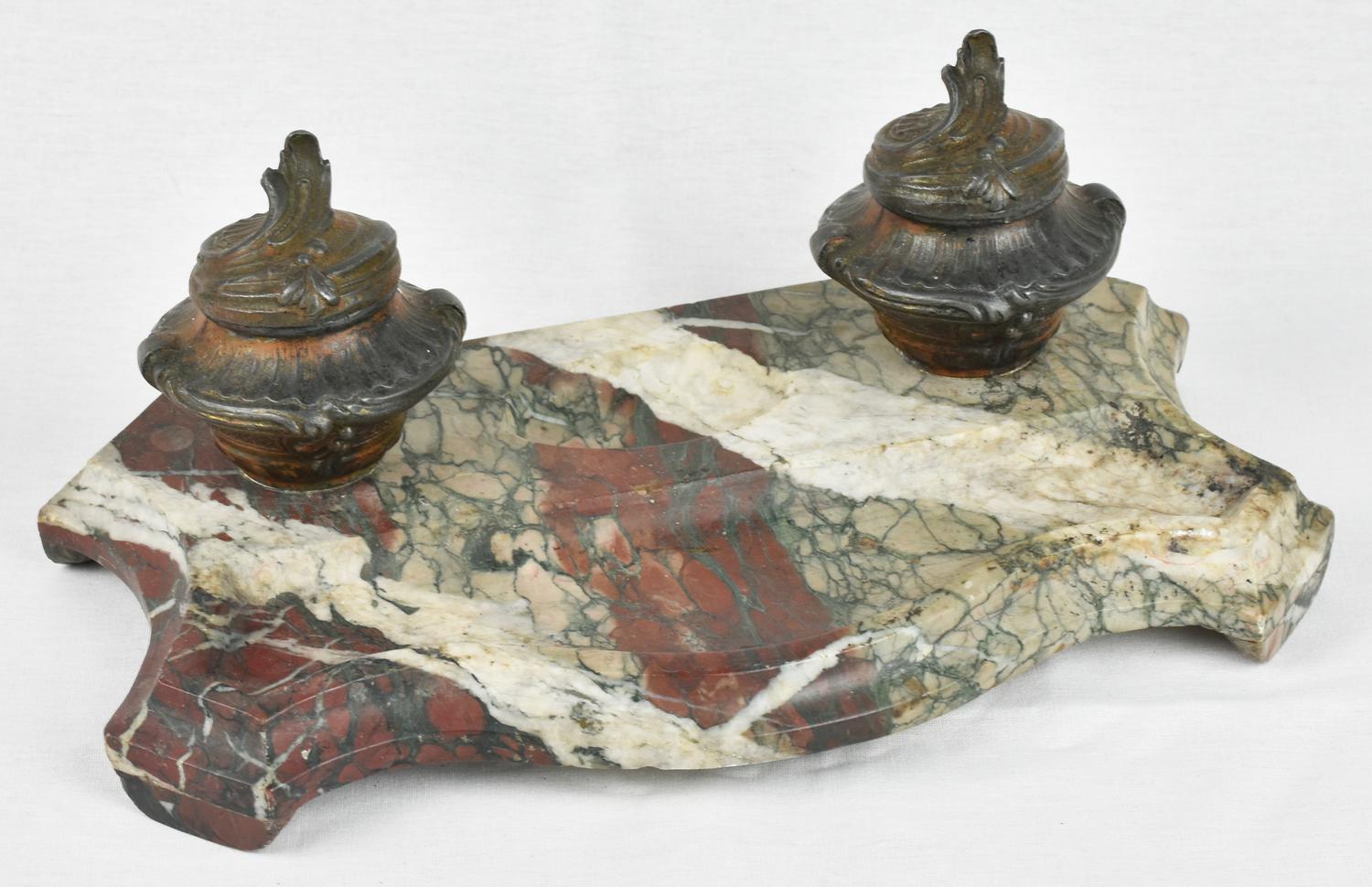 CALAMAIO IN MARMO con ampolle in antimonio mancano contenitori inchiostro...