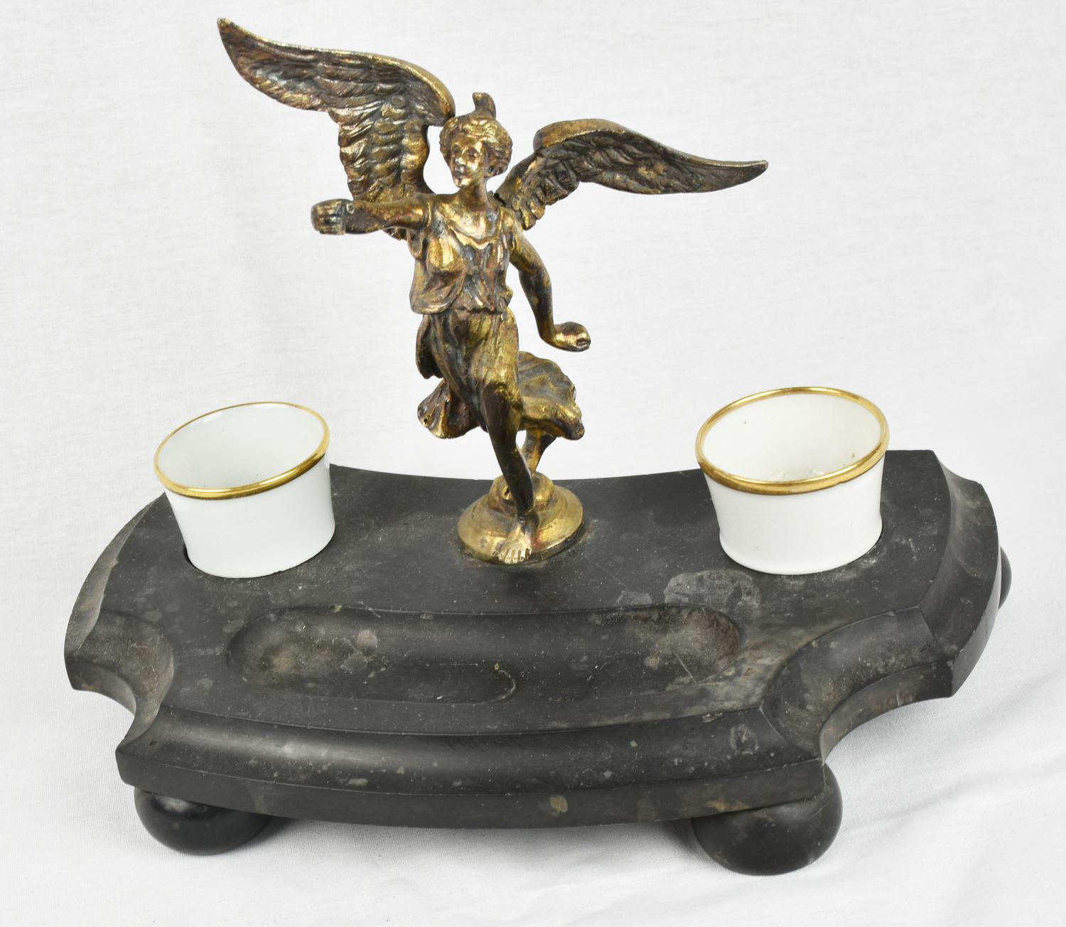 con contenitori in porcellana sormontato da vittoria alata in bronzo