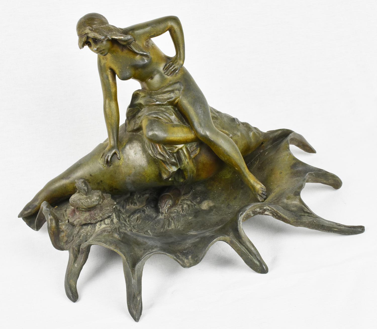 CALAMAIO IN ANTIMONIO raffigurante figura femminile che troneggia su una...