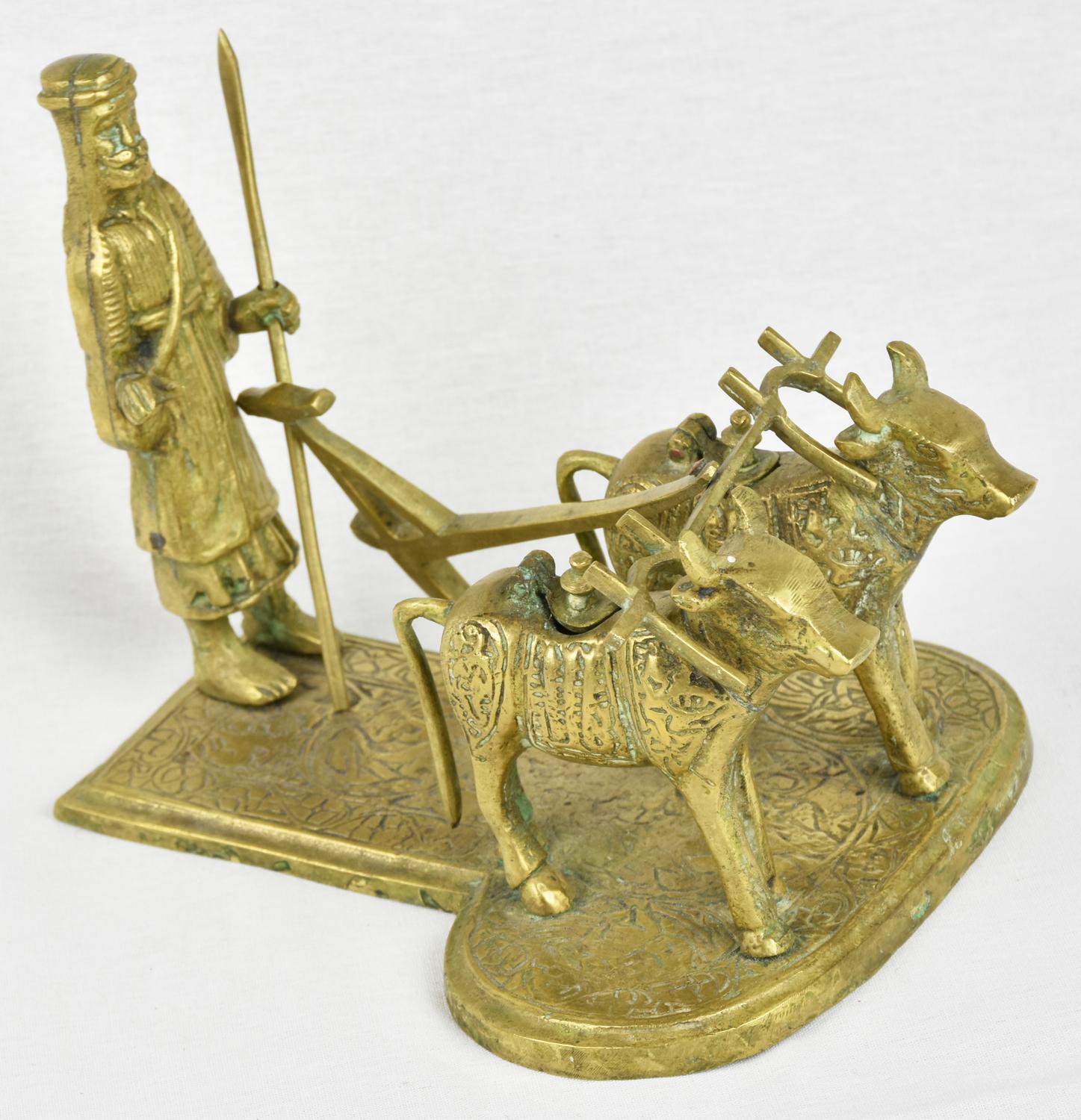 CALAMAIO IN BRONZO raffigurante un contadino con armenti e aratro Oriente,...