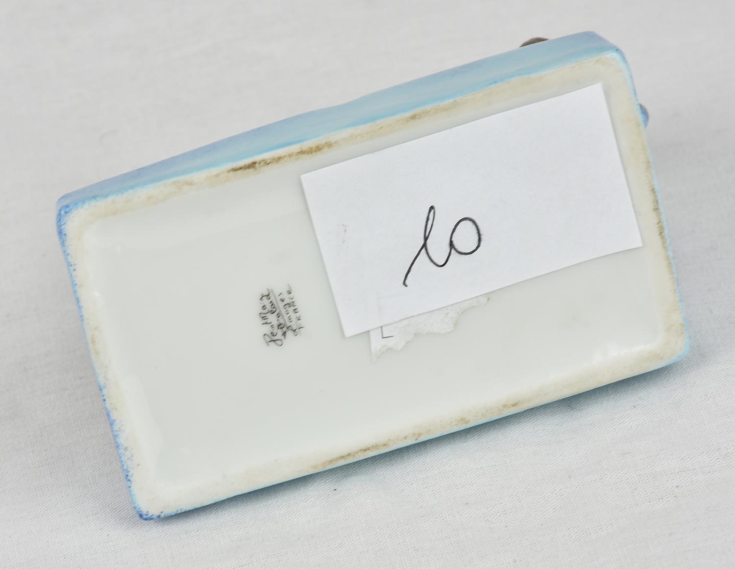 marchiato Limoges dipinto con scena di pesca su fondo azzurro