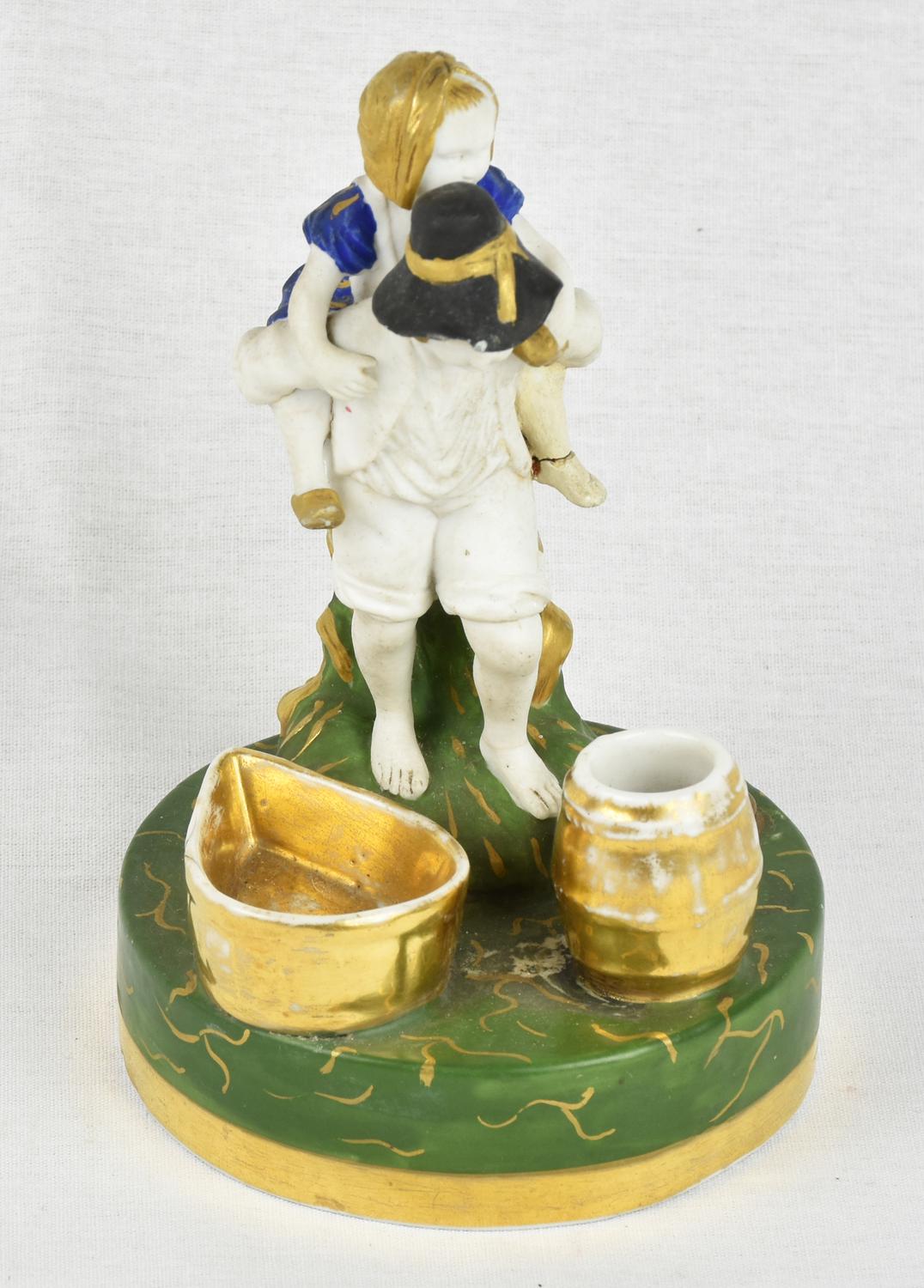CALAMAIO IN PORCELLANA raffigurante due bimbi che giocano Francia, seconda...