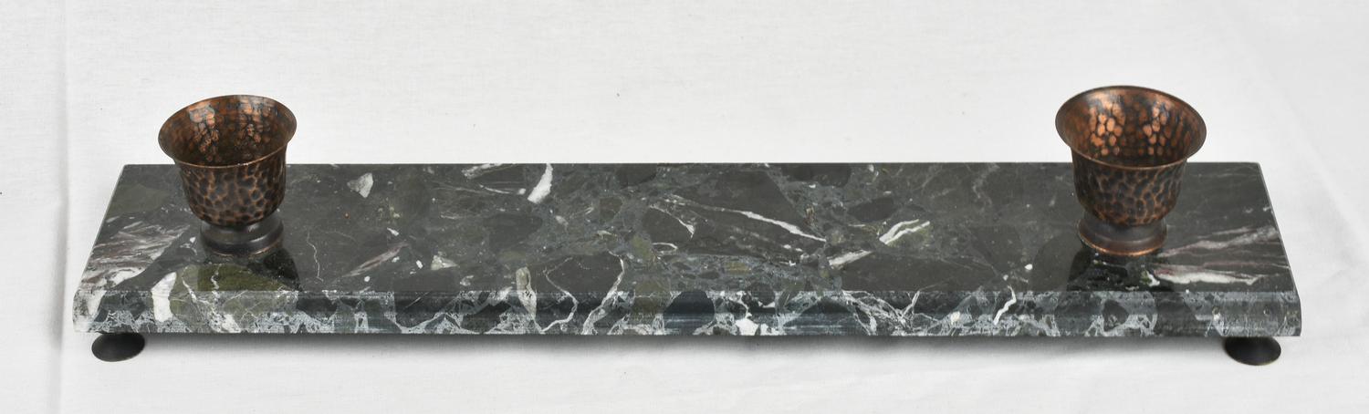 CALAMAIO IN MARMO con ampolle in rame Francia, inizio XX secolo cm 6x40x10