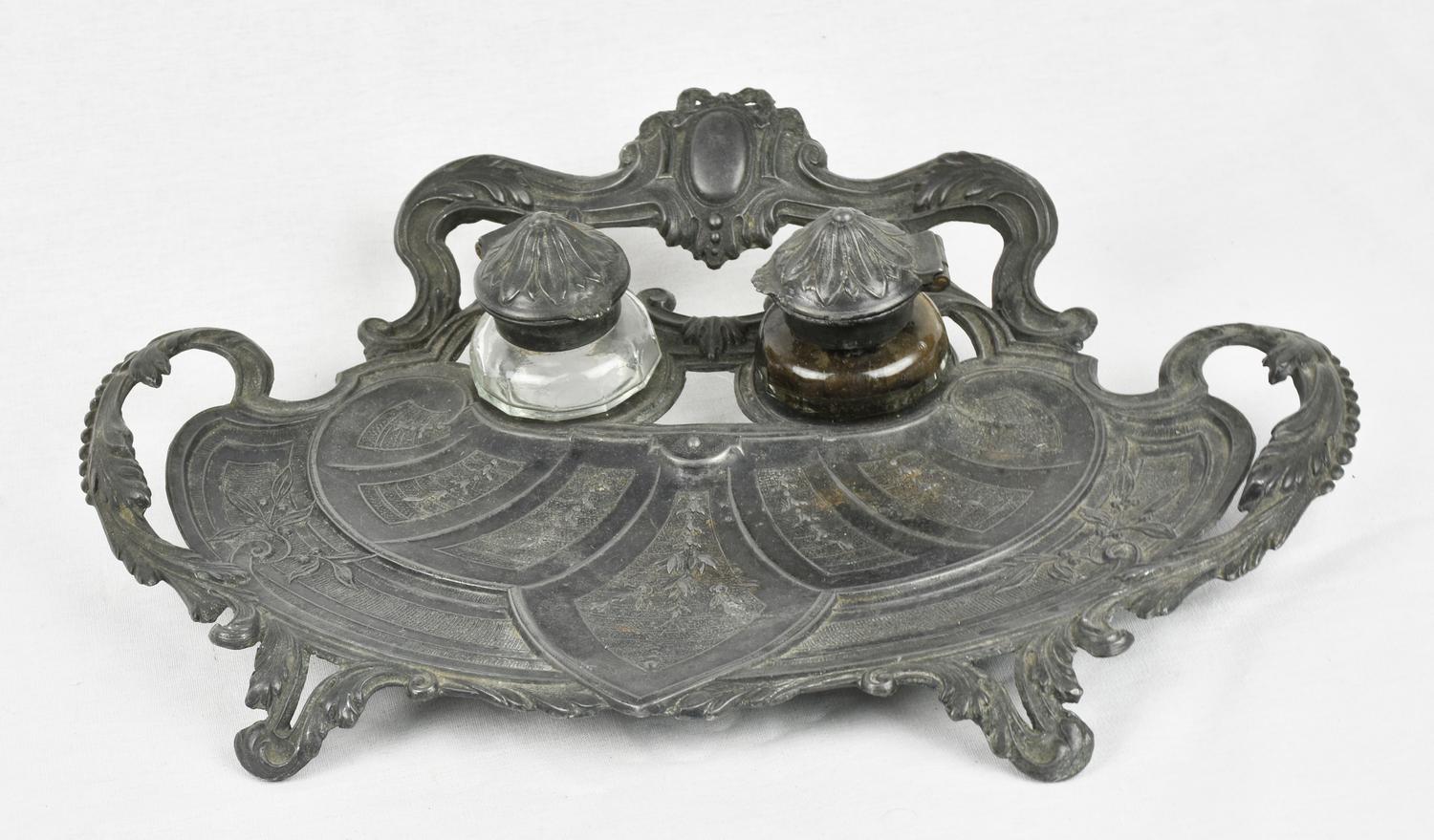 CALAMAIO IN ANTIMONIO decorato a volute Italia, inizio XX secolo cm 17x33x23