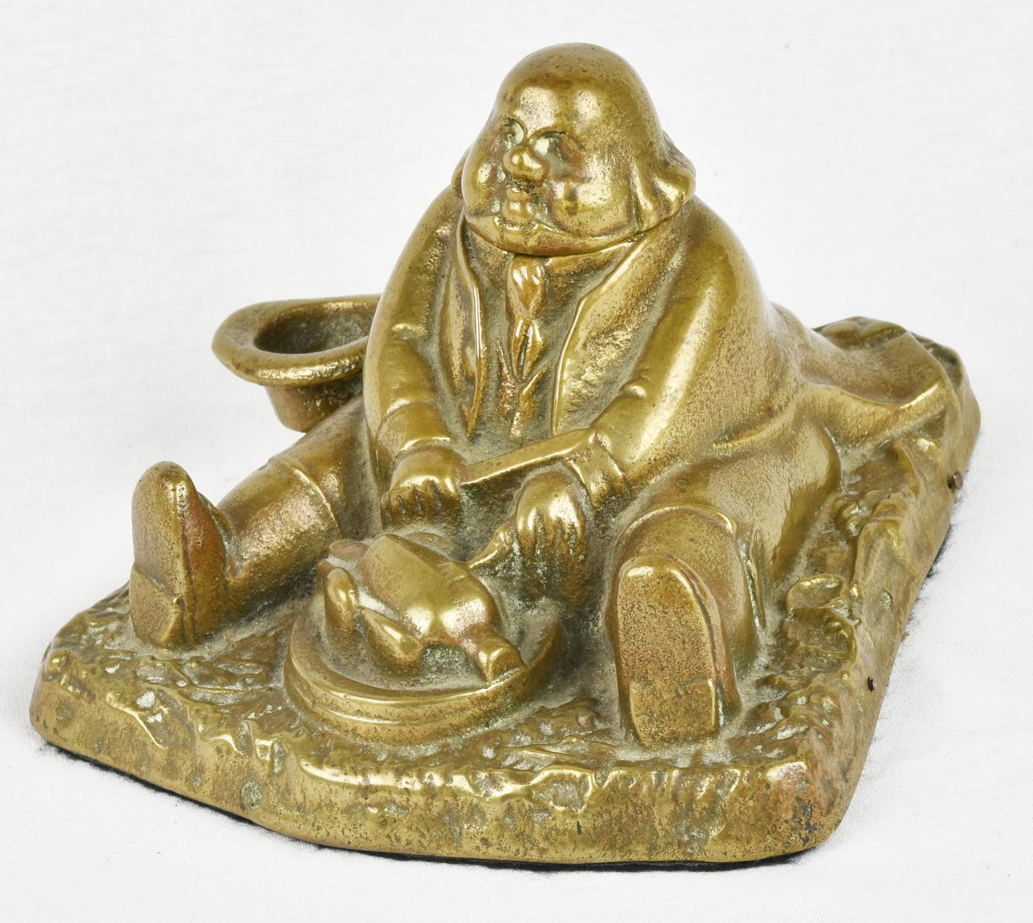 CALAMAIO IN BRONZO raffigurante un ghiottone che si agginge a mangiare un...