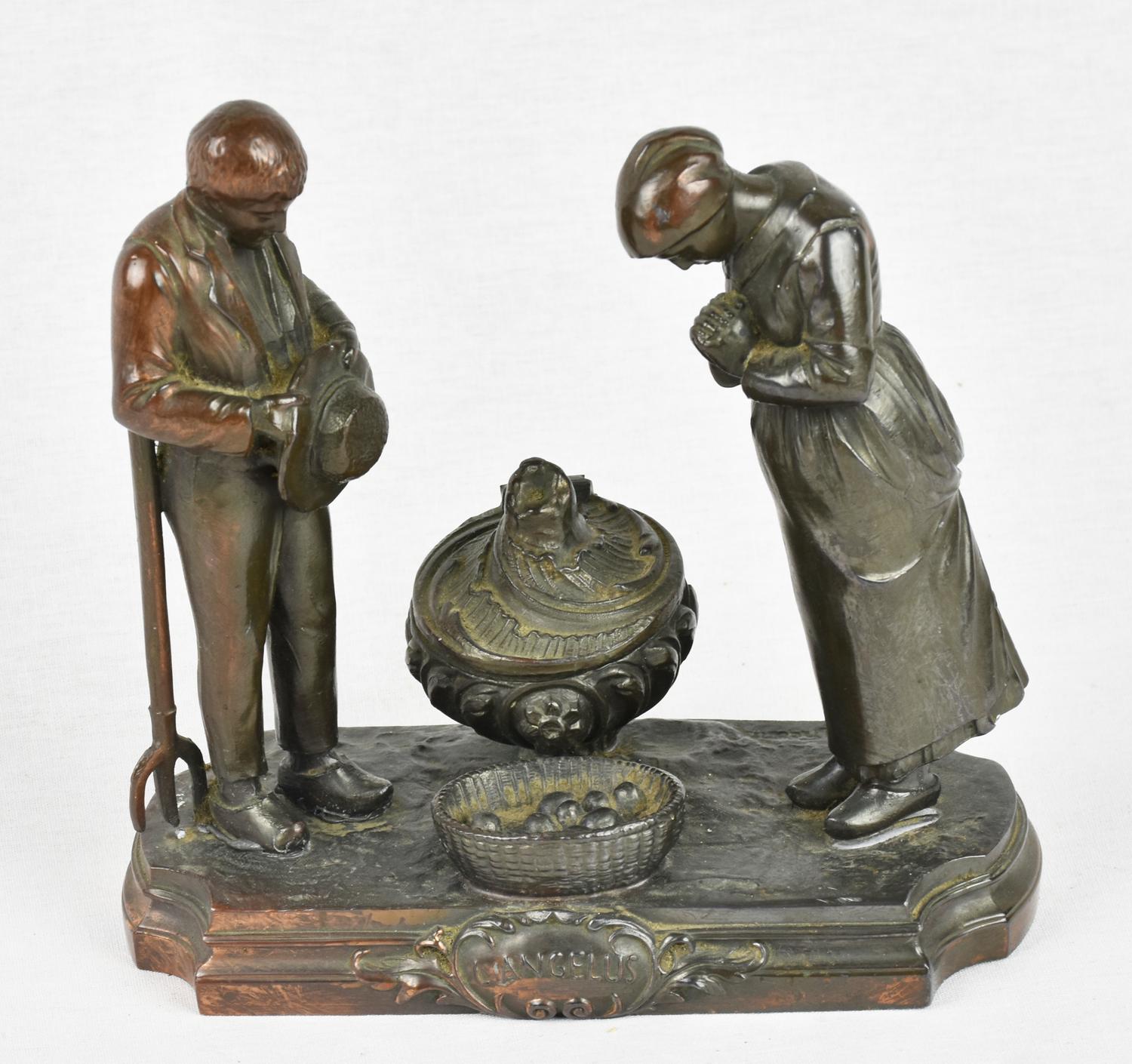CALAMAIO in antimonio raffigurante due contadini che ringraziano per il...