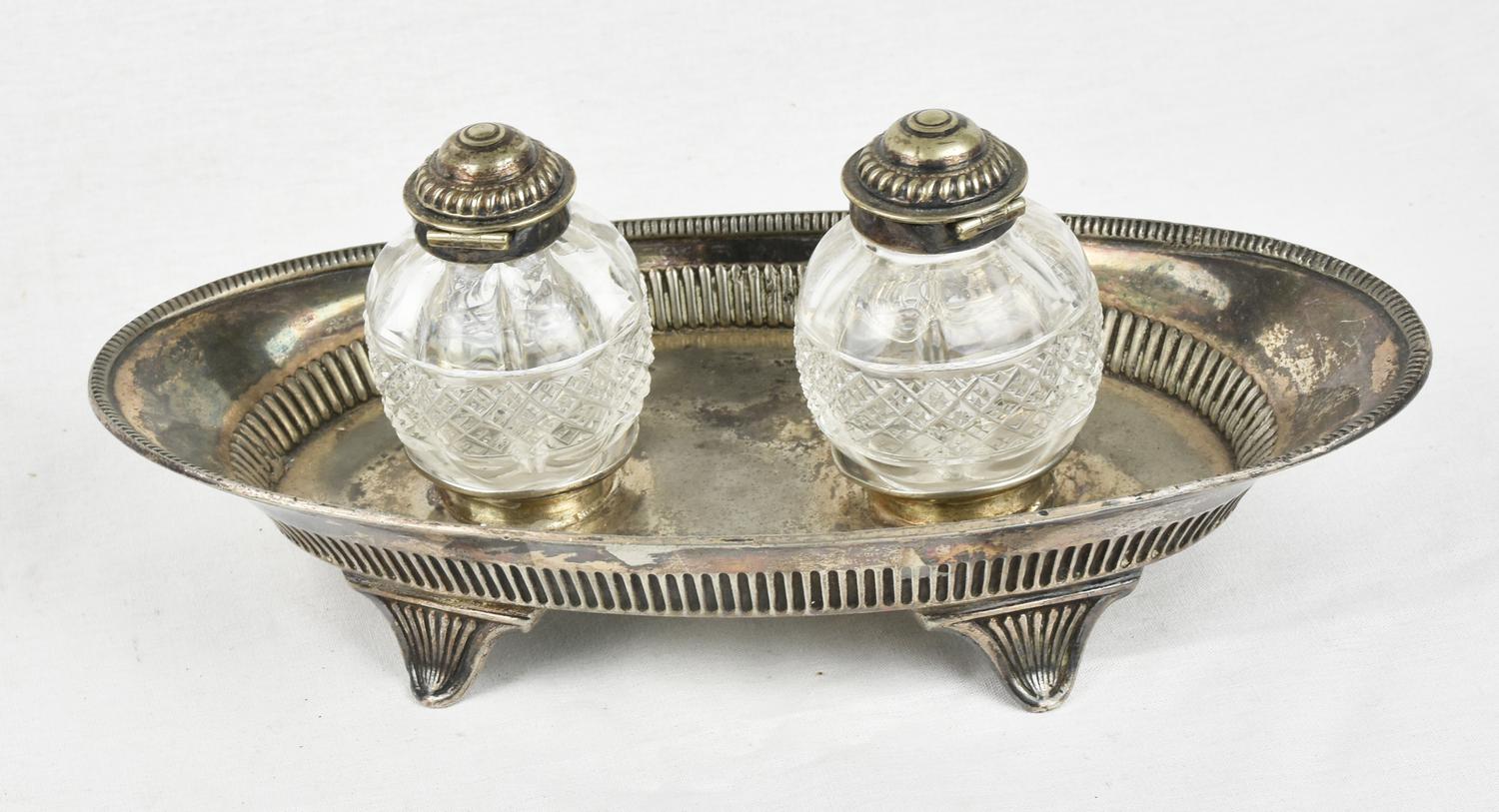 CALAMAIO A NAVICELLA in metallo argentato Inghilterra, inizio XX secolo cm...