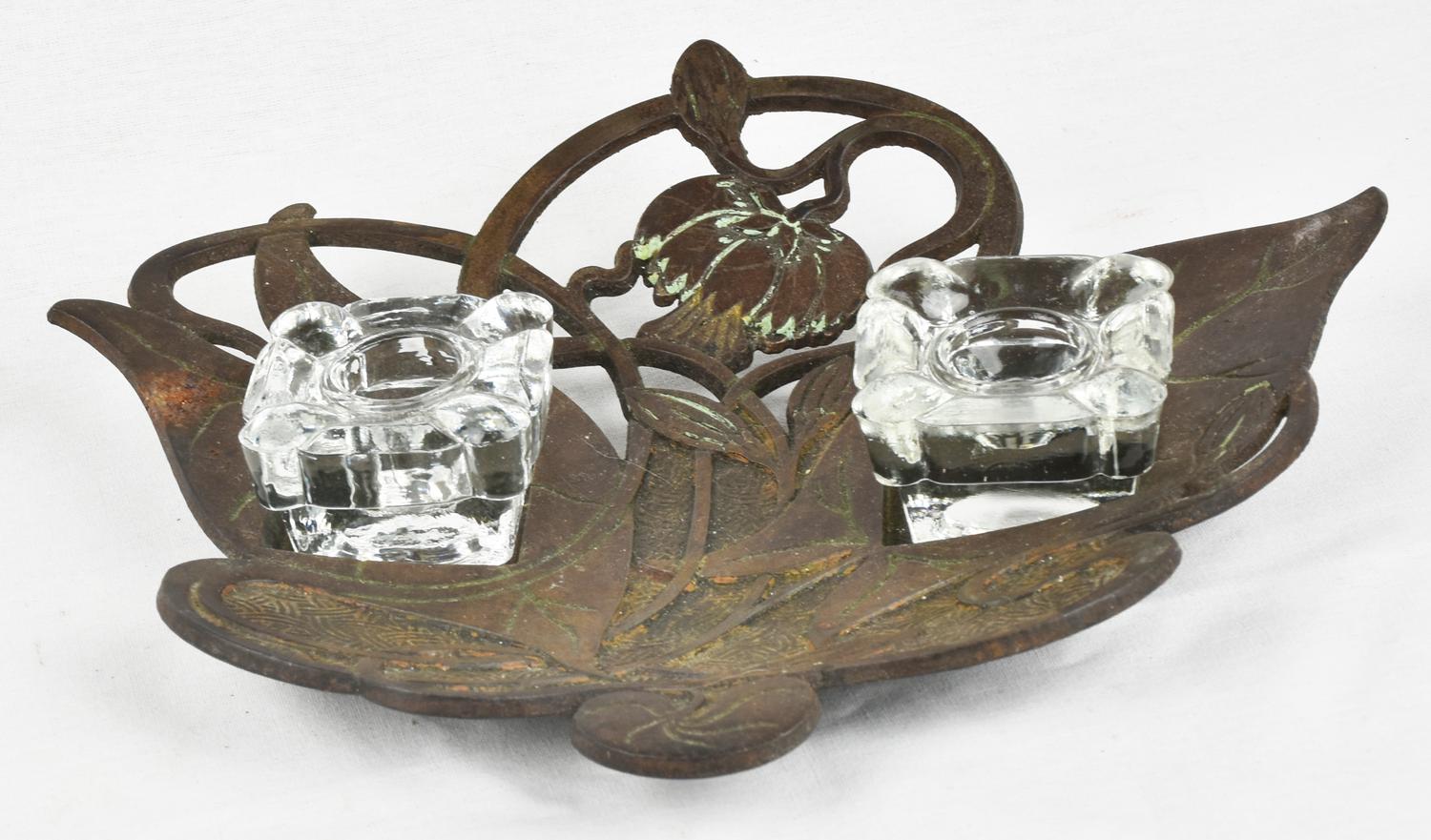 Lotto 106 | CALAMAIO IN ANTIMONIO a forma di foglia con fiore cm 26x21x5