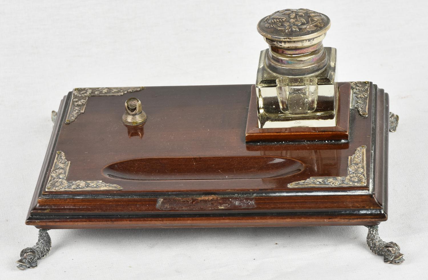 CALAMAIO IN LEGNO con decorazioni in metallo argentato Inghilterra, inizio XX...