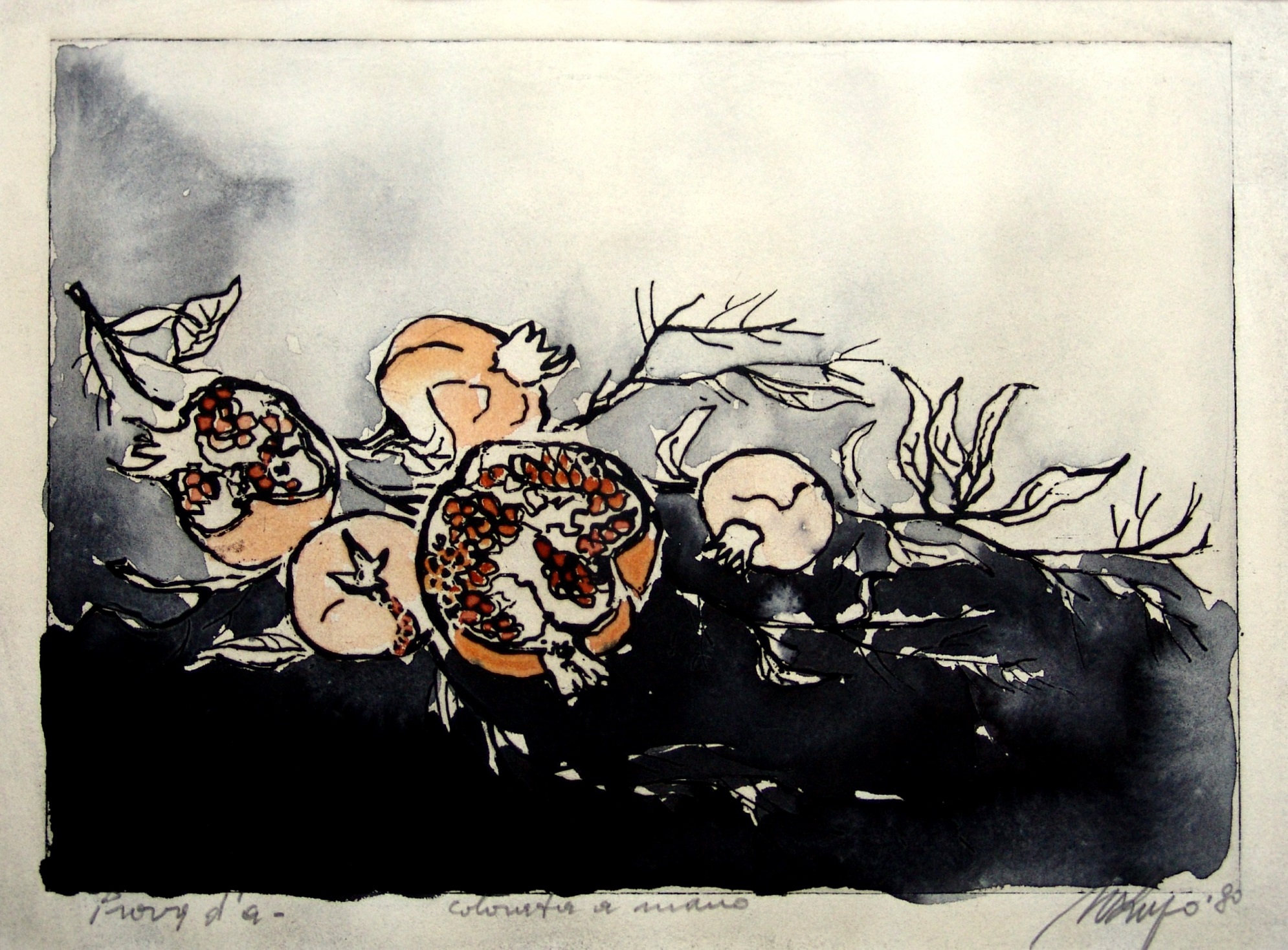 acquaforte colorata a mano, 40x50 cm
