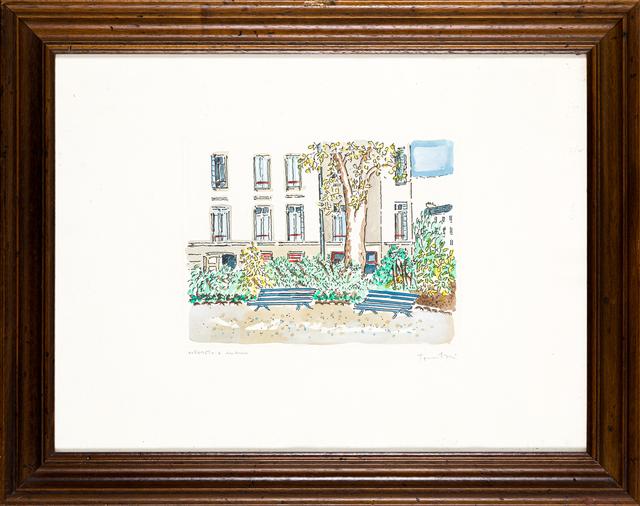 Firma e numerazione (Esemplare colorato a mano) a matita al fronte