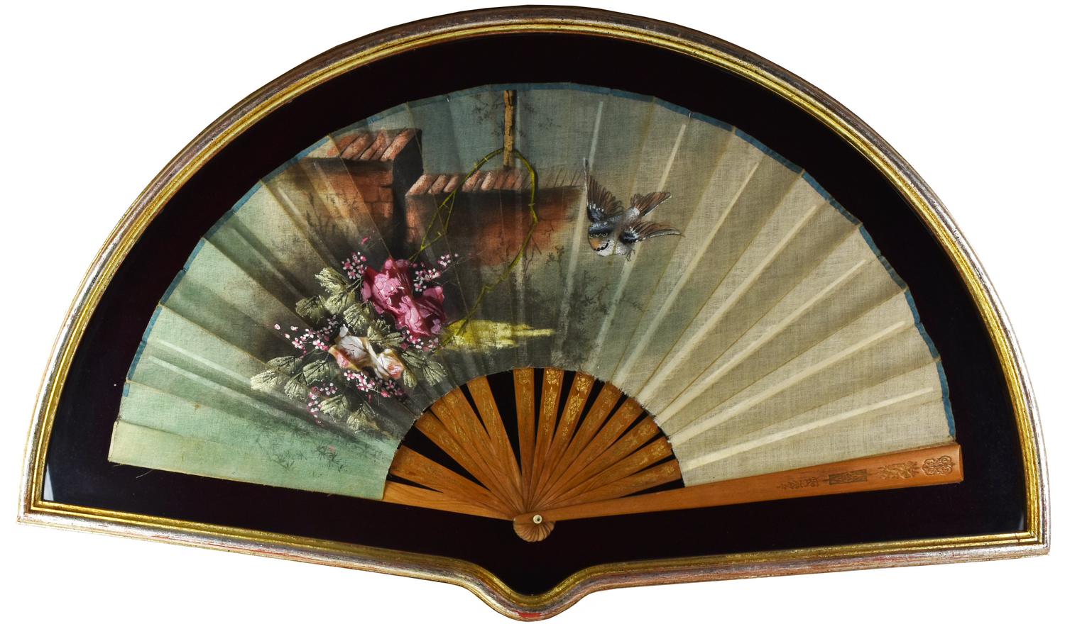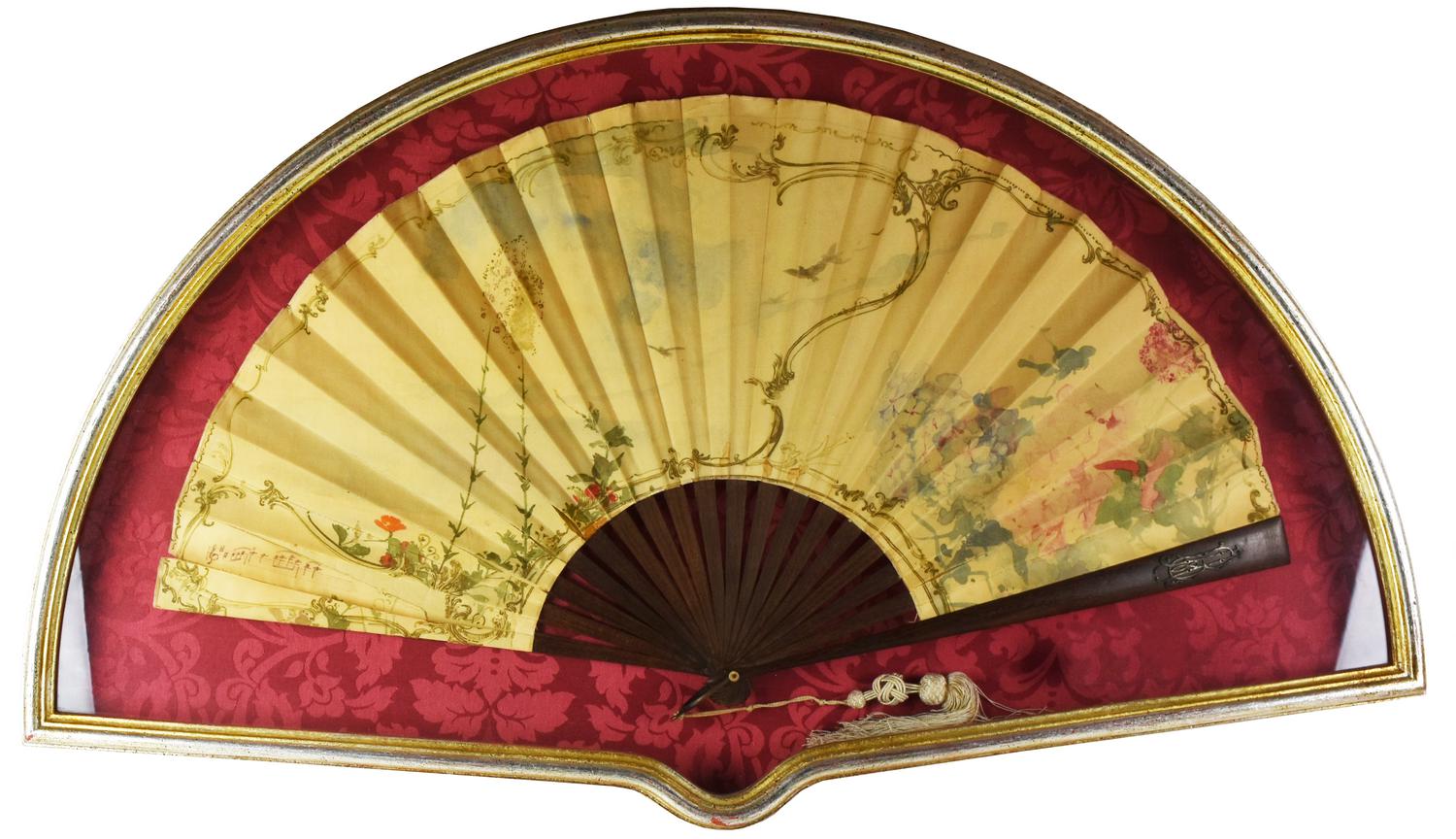 VENTAGLIO monogrammato in argento e carta dipinta Francia, primo quarto XX...