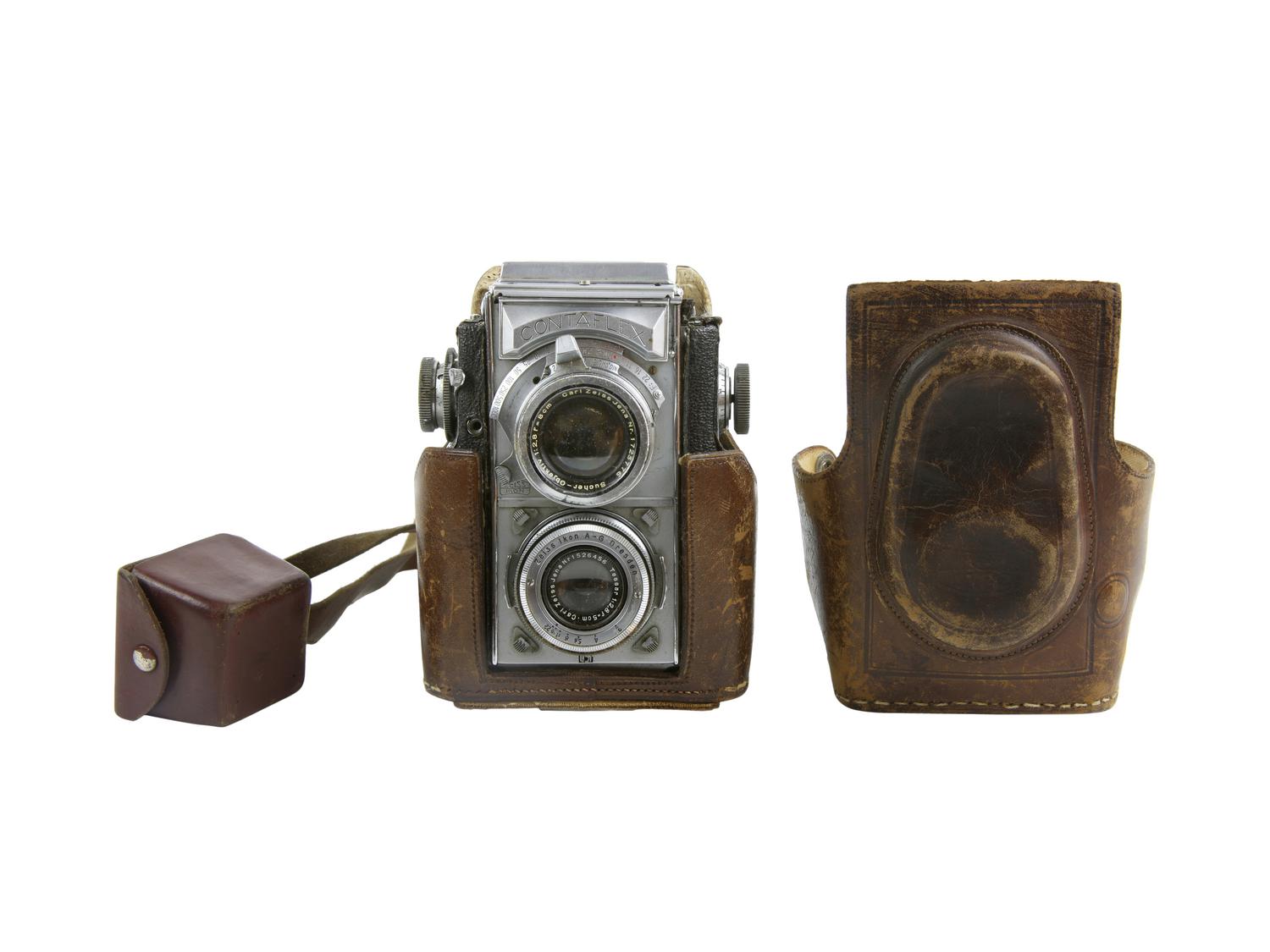 La Zeiss Ikon Contaflex 860/24 è una rara TLR formato 35 mm, prodotta dal 1935 al 1940. E' dotata di ottica da visualizzazione Carl Zeiss Jena Sucher-Objektiv 8 cm f. 2.8 con matricola n.1723776 e una lente Carl Zeiss Jena Tessar 5 cm f. 2.8 con matricola n.1526456. Condizioni da normale utilizzo. Non testata. Possibili malfunzionamenti e/o parti mancanti.