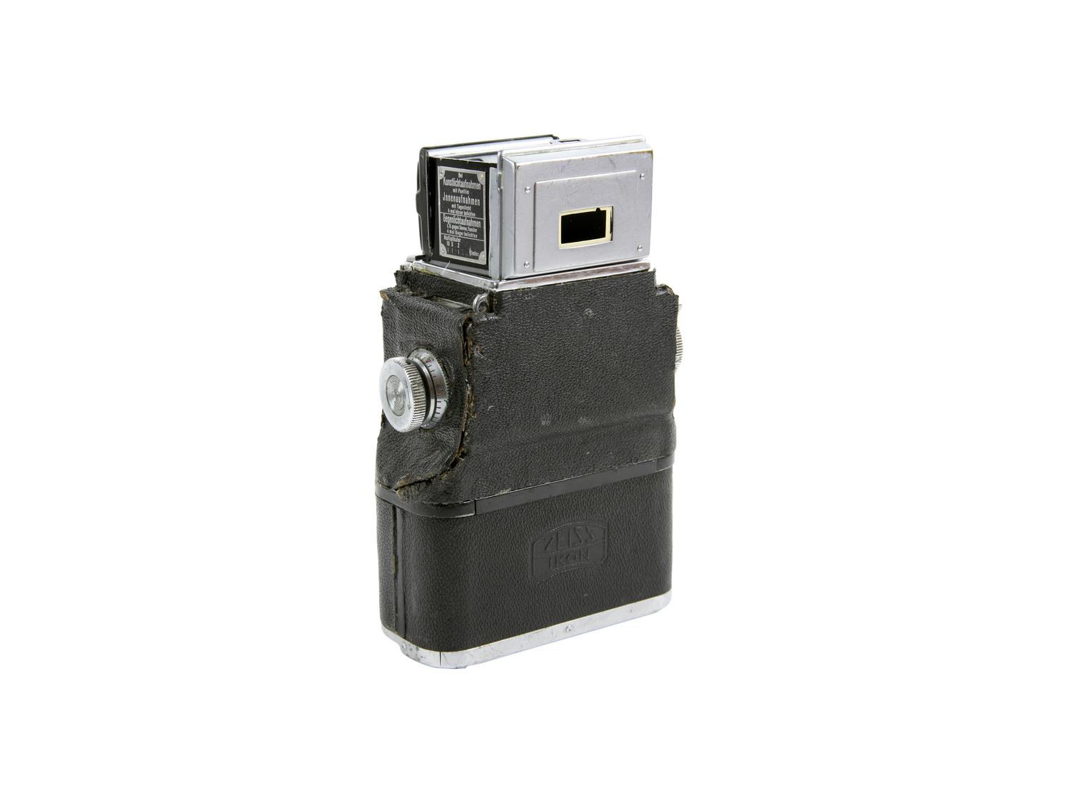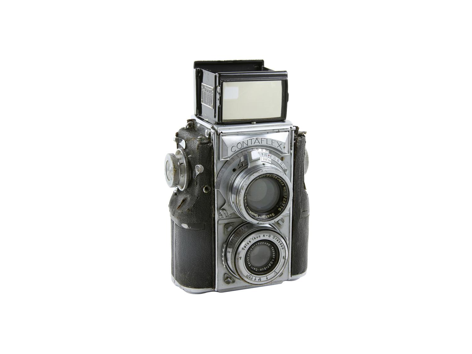 The Zeiss Ikon Contaflex 860/24 is a rare 35 mm TLR, produced from 1935 to 1940. Equipped with Carl Zeiss Jena Sucher-Objektiv 8 cm f. 2.8 display lens with serial number 1723776 and a Carl Zeiss Jena Tessar 5 cm f. 2.8 lens with serial number 1526456. In a normal use condition. Not tested. Possible malfunctions and/or missing parts.