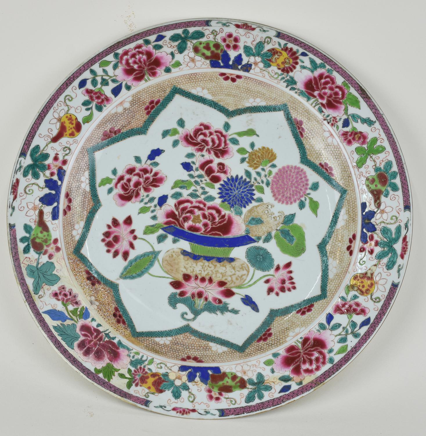 PIATTO CINESE Famiglia Rosa Cina, XIX secolo diam cm 44 Difetti, mancanze,...