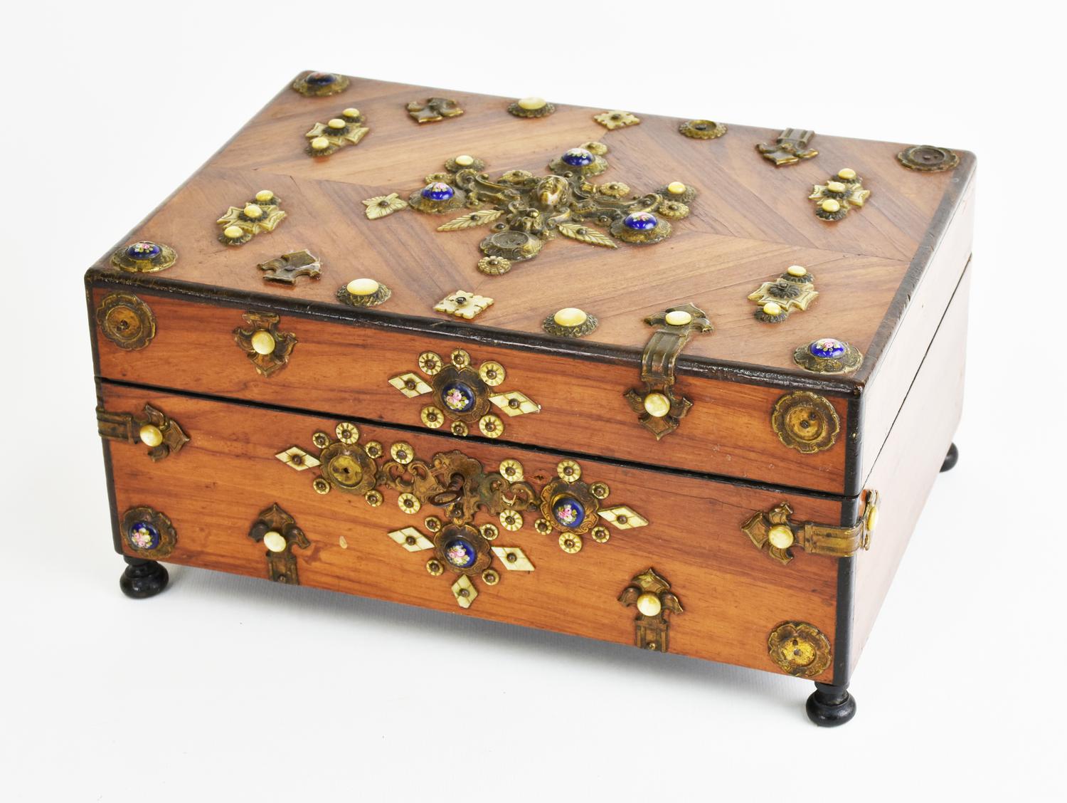 COFANETTO in boise de rose, con applicazioni in bronzo dorato, porcellana e...
