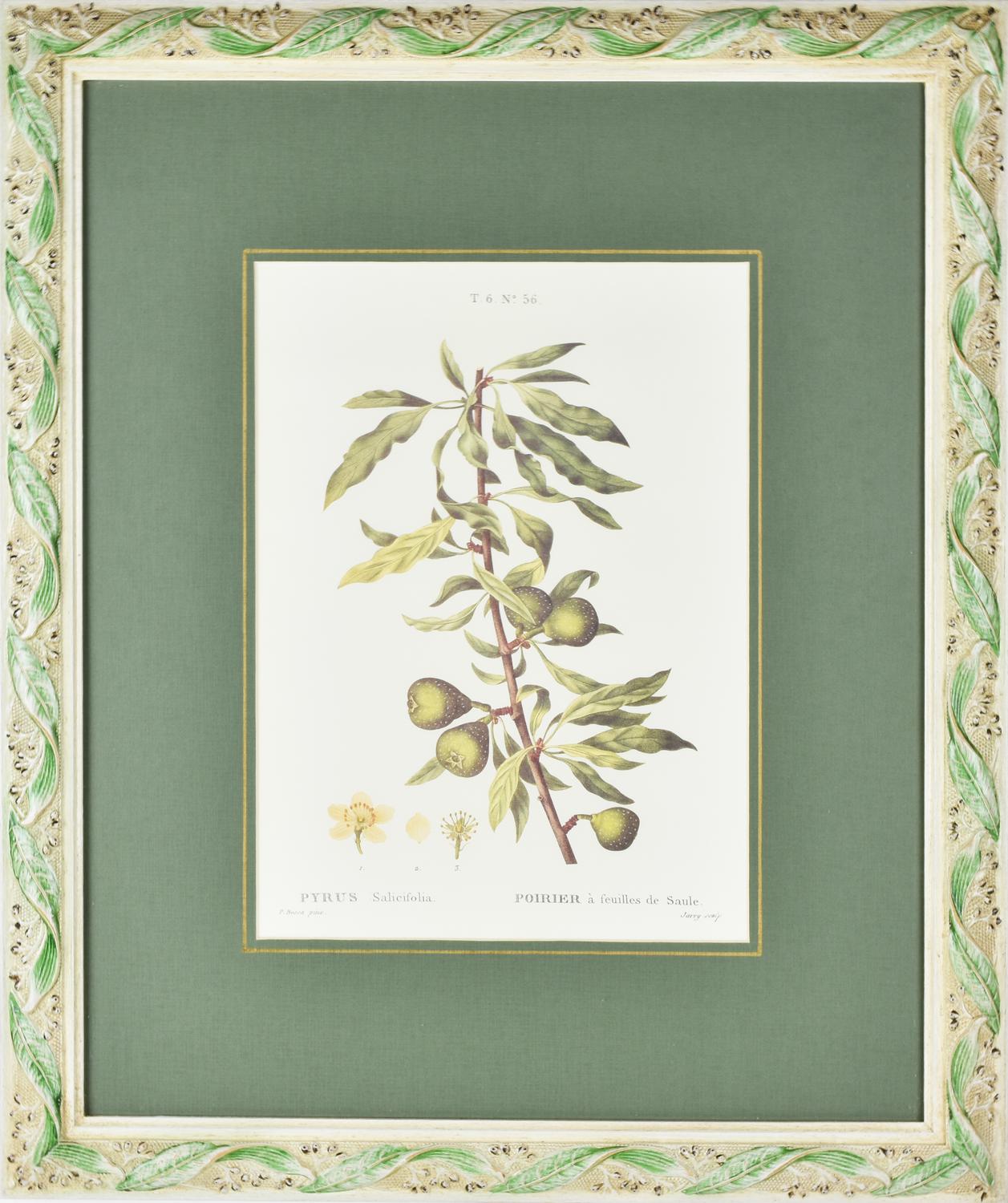 raffigurante Pyrus Salicifolia, da un'incisione antica a firma P. Bessa e Jarry entro cornice in legno scolpito e laccato