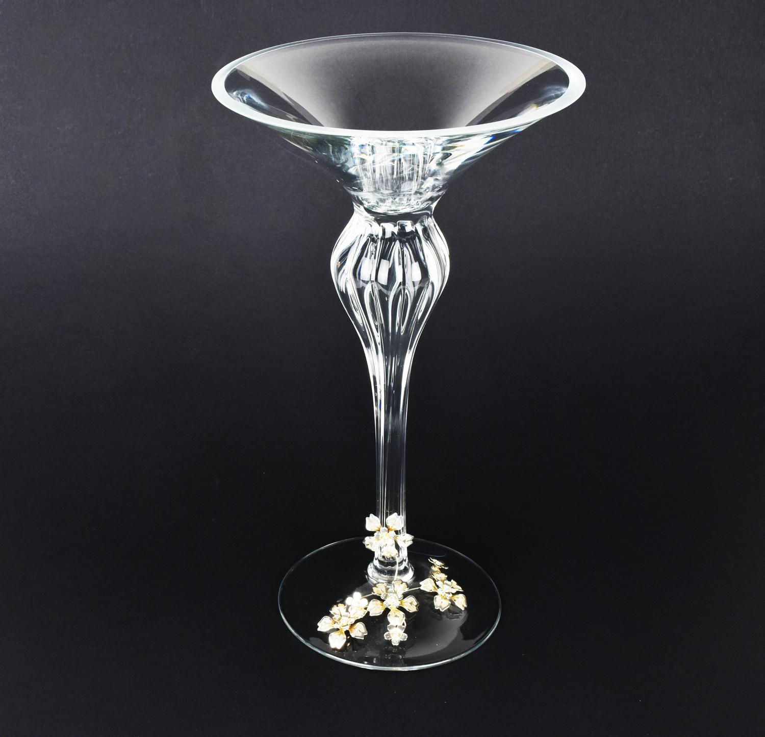 Lotto 148 | GRANDE COPPA IN VETRO CON DECORAZIONI IN METALLO ARGENTATO h cm 35