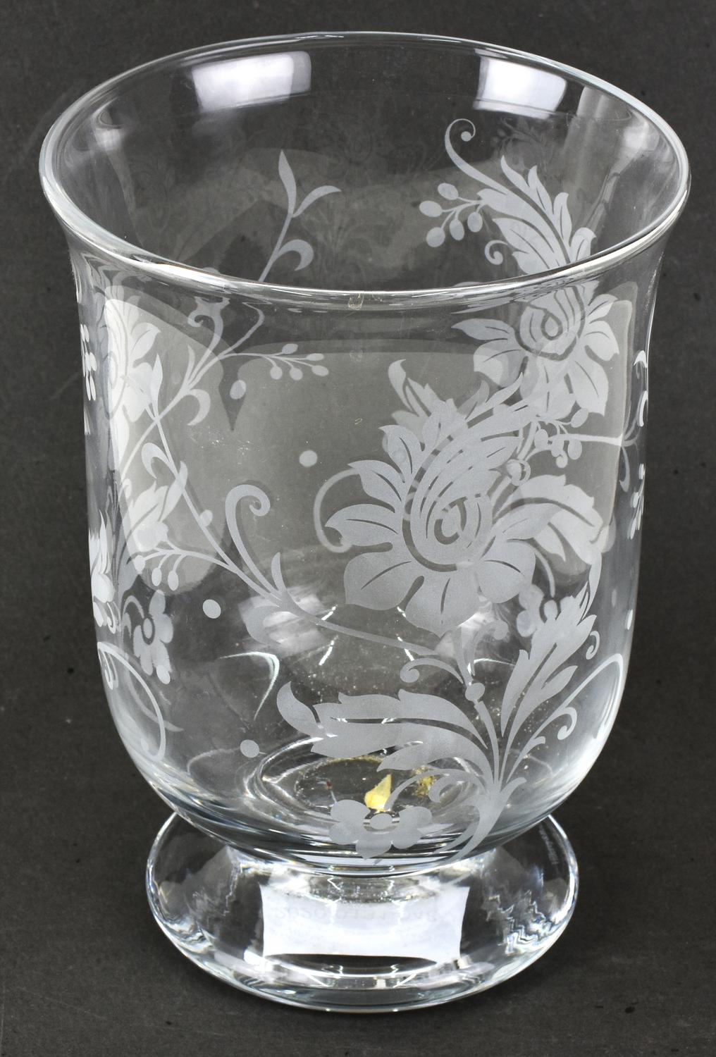 VASO IN VETRO con decorazioni incise a motivi floreali h cm 24 diam cm 17