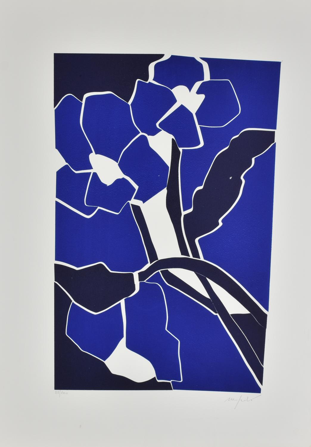 Ugo Nespolo FIORI BLU incisione su carta, battuta cm 51x32,5, su foglio cm...