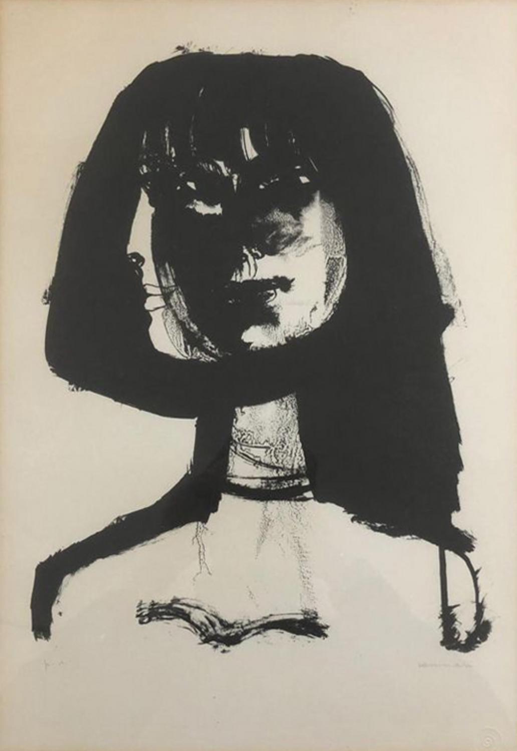 Bruno Cassinari RITRATTO FEMMINILE litografia su carta, cm 60x45; es. prova...