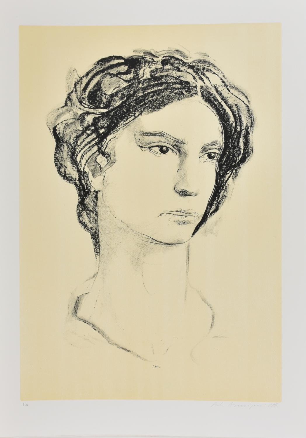 Pietro Annigoni RITRATTO litografia su carta, cm 70x50; es. prova d'autore firma