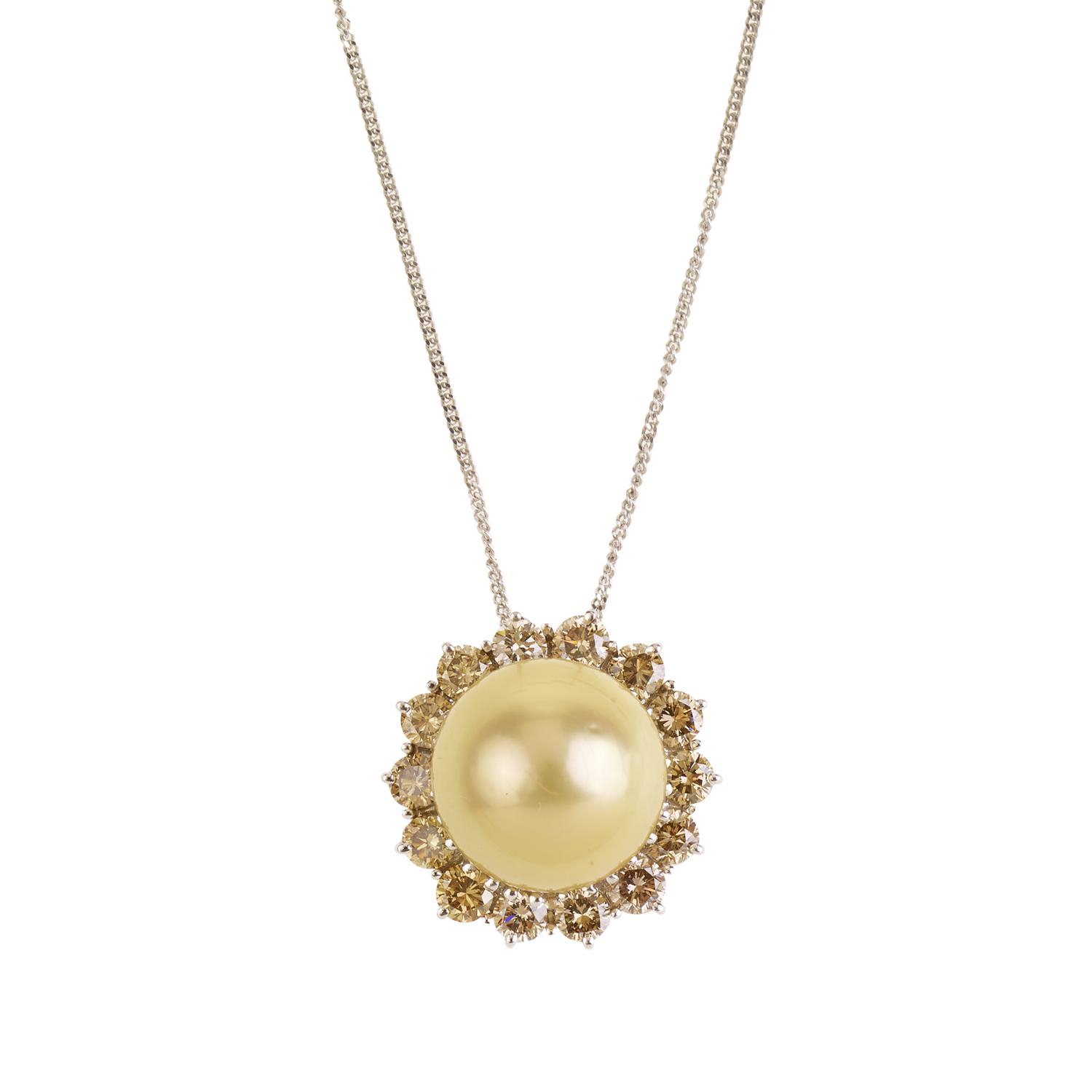 SOUTH SEA GOLD PEARL, FANCY DIAMOND AND WHITE GOLD PENDANT