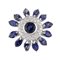 disegnato come una corolla dai petali lanceolati realizzati con ioliti navette montate entro castoni mobili a griffes, il pistillo decorato in pavé di diamanti e centrato da una iolite rotonda, punzone 750, mis 13, g 14