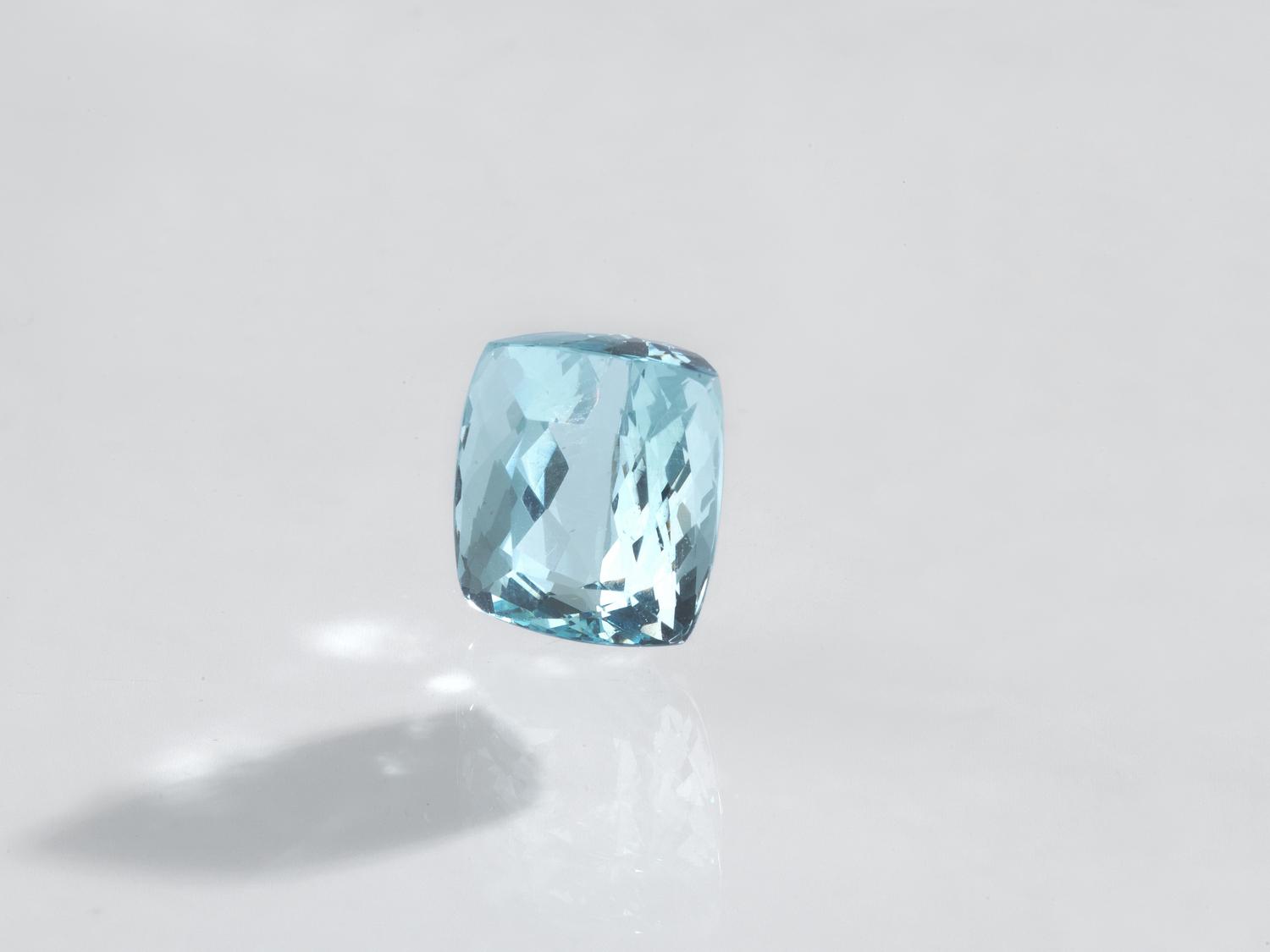 ACQUAMARINA CT 14.54 di forma rettangolare a lati curvi, mm 13,91x12,32x9,47...