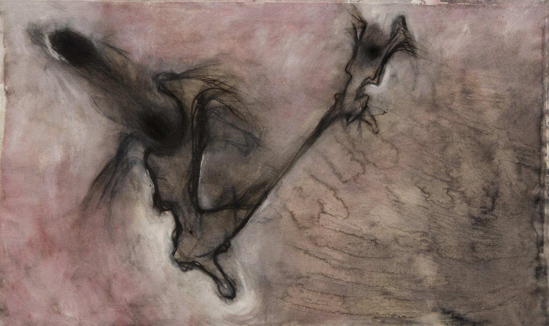MITOLO EZIA Taranto 1966 "Direzioni" pastelli ad olio, tintura ed acrilico su tela (non intelaiato) cm 55x34 del 2001. Autentica su foto a cura dell’artista.