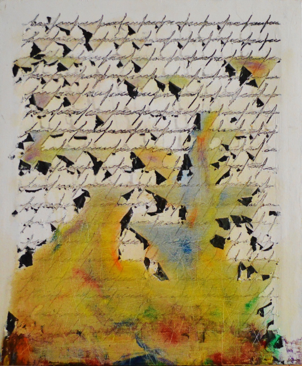 RAPETTI ALFREDO Milano 1961 ”Frammenti di un discorso amoroso” acrilico su tela 50x60 del 2016 , sul retro firmato datato e intitolato. Pubblicazione ; personale Esperanto a cura di Gianluca Ranzi Fondazione Maimeri Pag. 36. Catalogo allegato. Autentica e archiviazione su foto del maestro.
