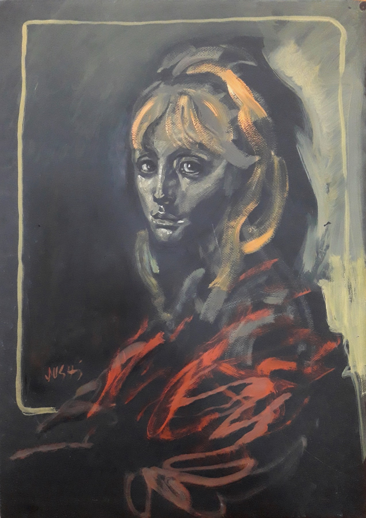 SUGHI ALBERTO Cesena 1928 - Bologna 2012 “Senza titolo” olio e tecnica mista su cartone rigido 50x70. Opera firmata in basso a sinistra. Archiviazione su fotografia a cura dell’archivio Sughi e lettera accompagnatoria.