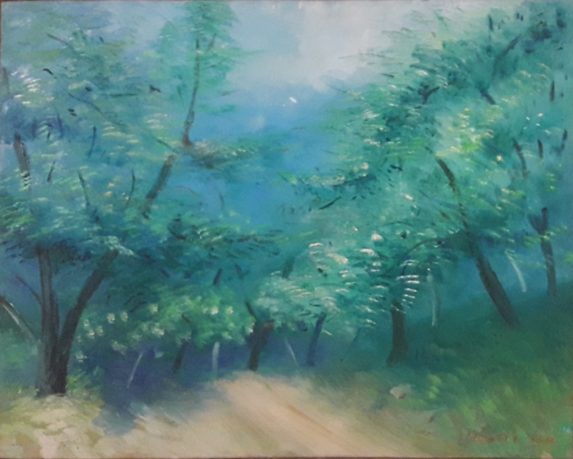 LILLONI UMBERTO Milano 1898-1980 “Bosco” olio su tela del 1964, cm 50x40, firmato in basso a destra, sul retro è firmato, autenticato, timbro galleria Schubert e timbro archivio. Autentica e archiviazione su foto,